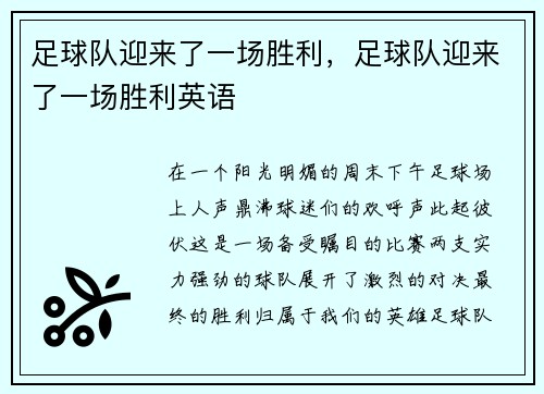 在一个阳光明媚的周末下午,足球场上人声鼎...