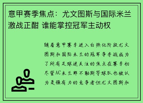 随着意甲赛季进入白热化阶段,尤文图斯和国...