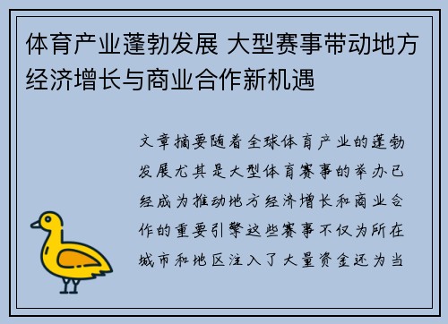 文章摘要:随着全球体育产业的蓬勃发展,尤...