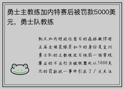 凯文·加内特,这位昔日的森林狼悍将、五届...