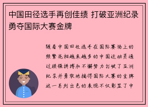 随着中国田径选手在国际赛场上的频繁亮相,...